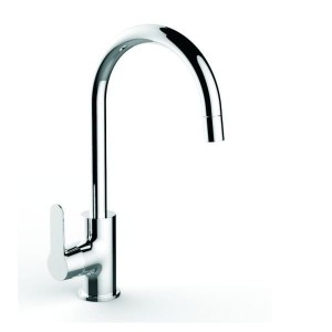 Bateria kuchenna renomowanej firmy GOSHE z serii EVA. Bateria jednouchwytowa z ruchomą wylewką. Bateria mosiężna z powłoką chromowaną.