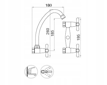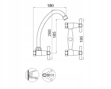 Bateria zlewozmywakowa ścienna z wylewką typ:F seria RETRO firmy GOSHE
