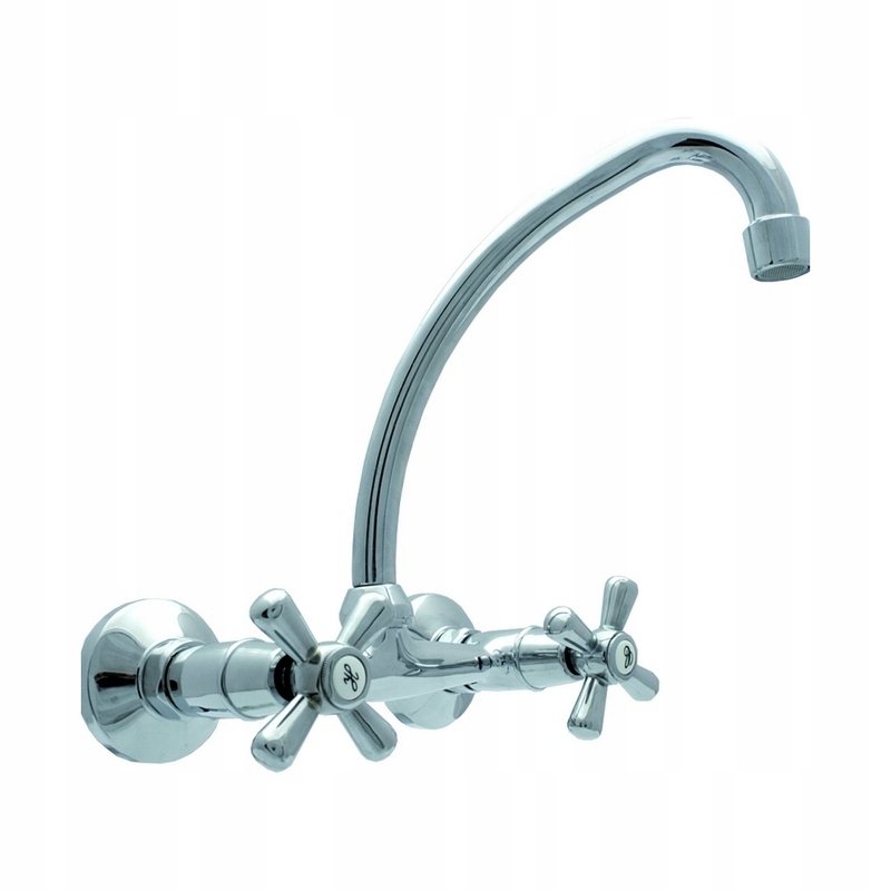 Bateria zlewozmywakowa ścienna renomowanej firmy GOSHE RETRO. Bateria dwuuchwytowa. Bateria mosiężna z powłoką chromowaną.