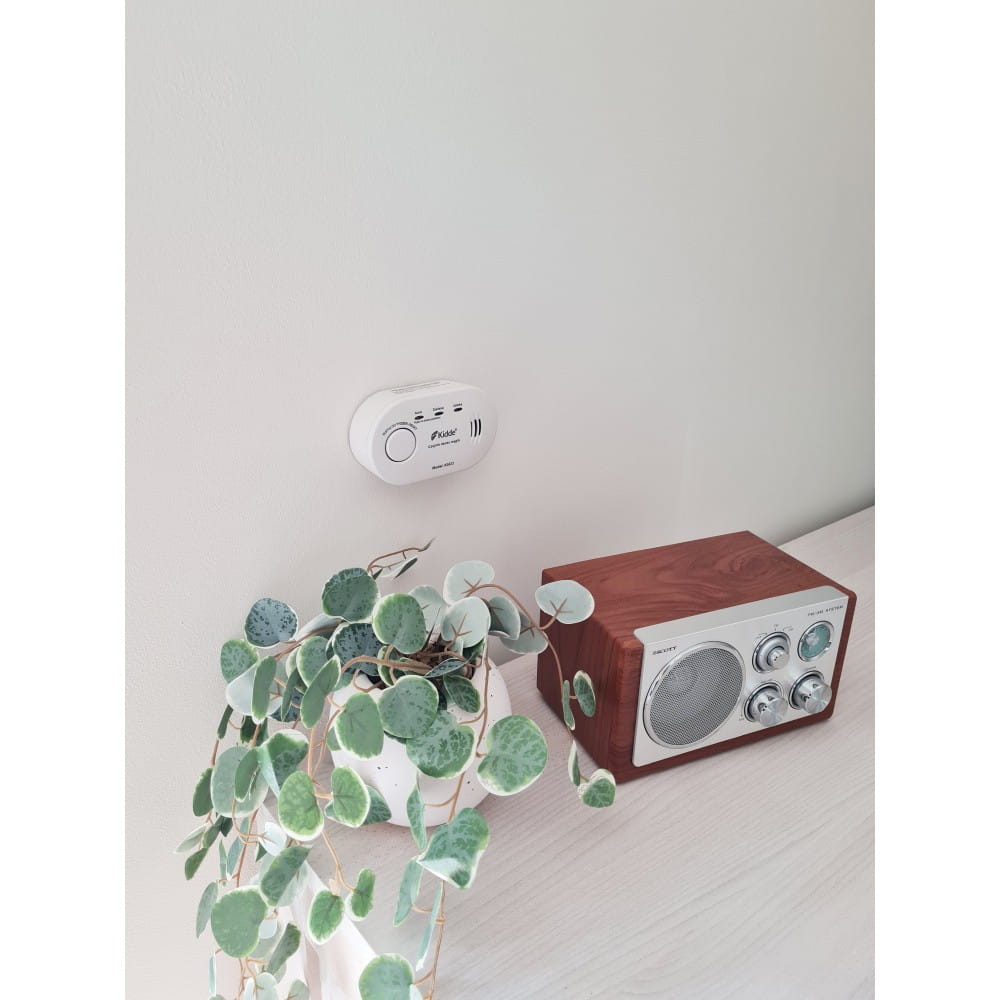 Dzięki specjalnie zaprojektowanej obudowie oprócz montażu na ścianie czujnik może być także postawiony na płaskiej powierzchni np. na szafce nocnej w pobliżu łóżka. Po 10 latach od aktywacji zasilania czujnik przypomni o konieczności wymiany urządzenia.