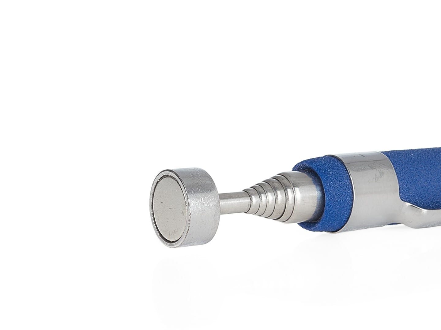 Chwytak teleskopowy z końcówką magnetyczną to narzędzie do unoszenia i przytrzymywania przedmiotów metalowych. Przydatny podczas prac montażowych w trudno dostępnych miejscach, unoszenia przedmiotów itp. Regulowana długość chwytaka.