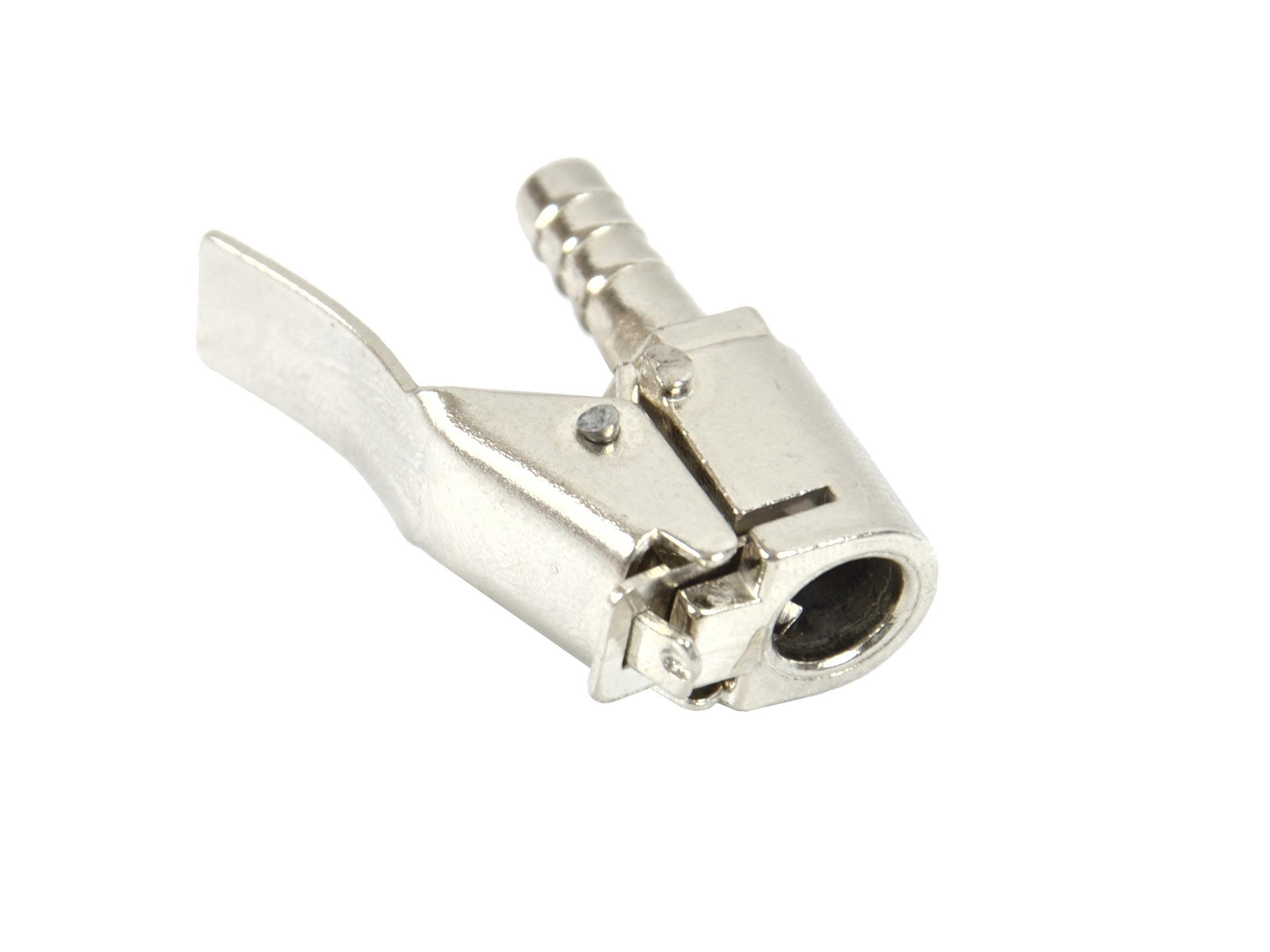 Metalowa końcówka pistoletu do pompowania kół ze standardowym zaworem samochodowym.