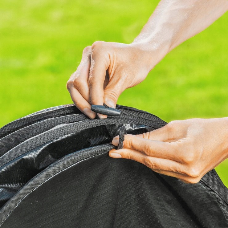 - oszczędność miejsca składowania, (konstrukcja sprężynowa) możliwość złożenia na płasko, gdy nie jest używany