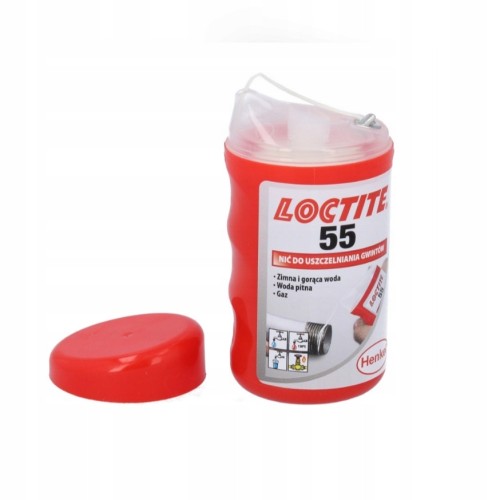 Loctite 55 jest uniwersalnym uszczelniaczem do instalacji rurowych. Produkt spełnia wymagania odpowiednich norm regulujących jego zastosowanie do instalacji gazowych i wody przeznaczonej do picia. Umożliwia natychmiastowe uszczelnienie (niezależnie od temperatury otoczenia) wszystkie instalacje rurowe podczas ich montażu. Woda przeznaczona do picia: Loctite 55 jest umieszczony na liście środków WRC mających kontakt z wodą do picia do temperatury 85°C; spełnia wymogi normy BS 6920, zalecenia KTW dla ciepłej i zimnej wody. Dodatkowo produkt posiada ergonomiczny kształt opakowanie umożliwiający pewne trzymanie w dłoni.
