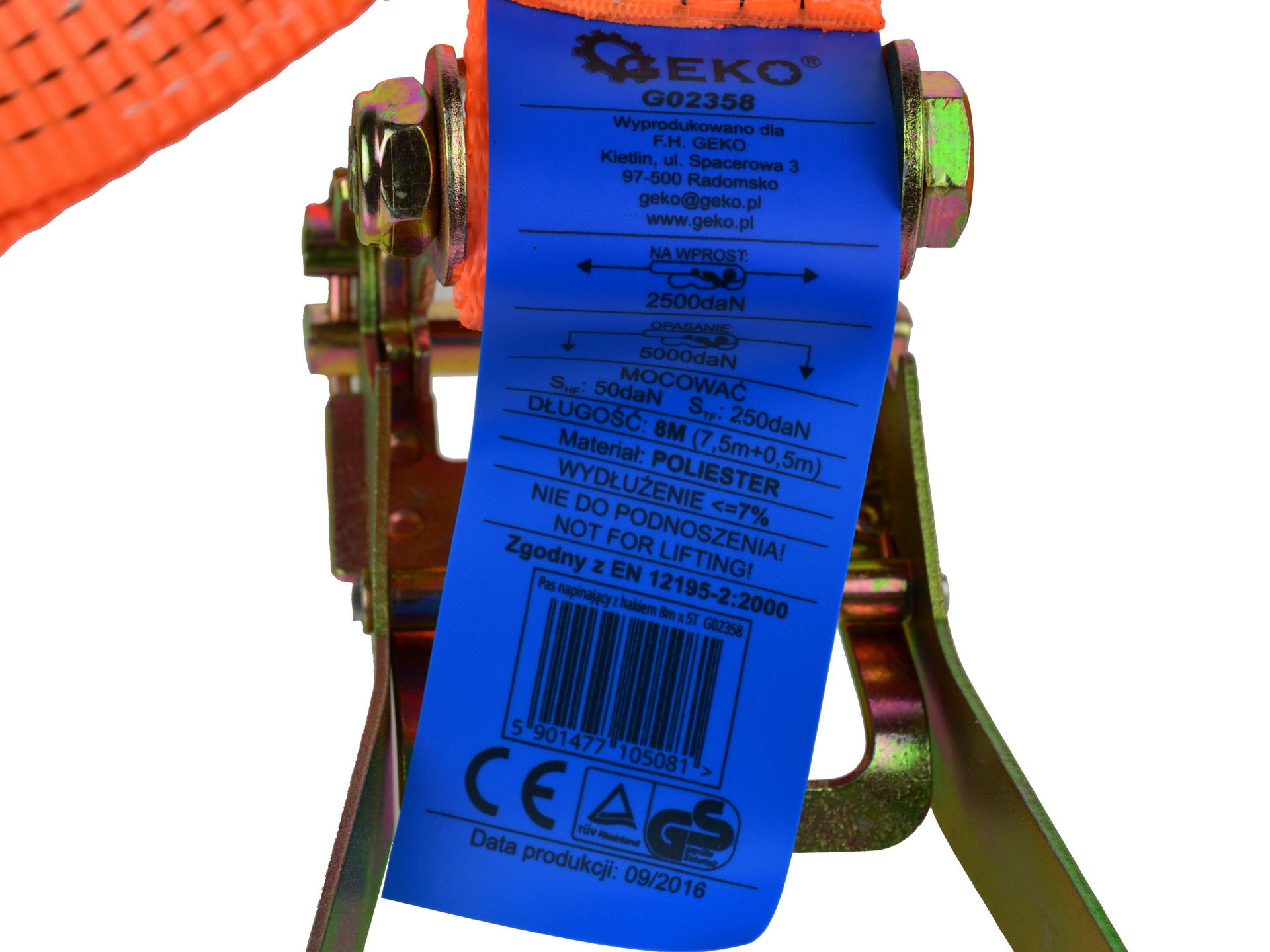 Pas transportowy z grzechotką 8m/5T/50mm marki GEKO