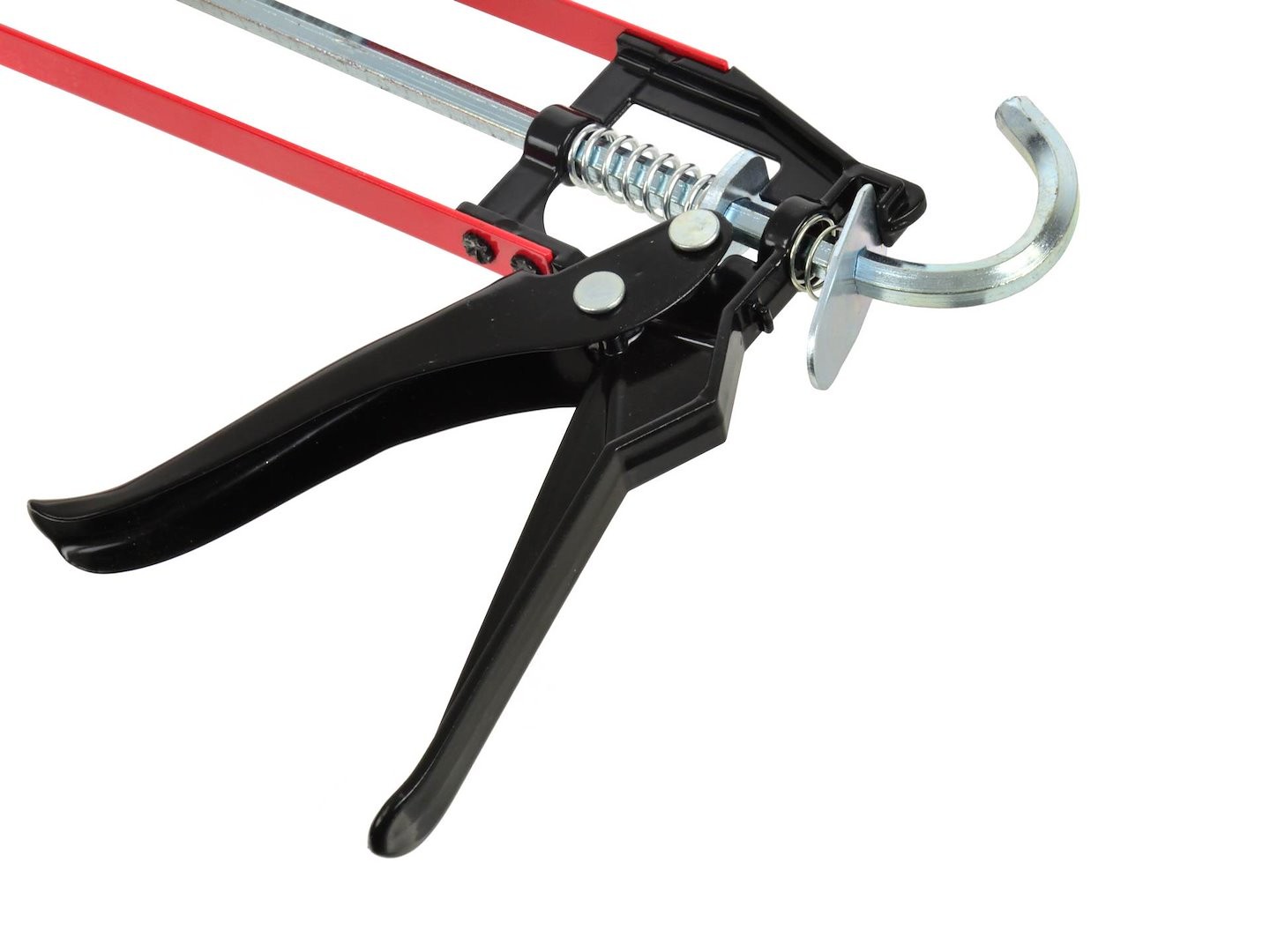Szkieletowy wyciskacz do silikonów, przeznaczony do tub o pojemności ok. 300 ml. Posiada sześciokątny trzpień z bezstopniowym posuwem, co usprawnia pracę.