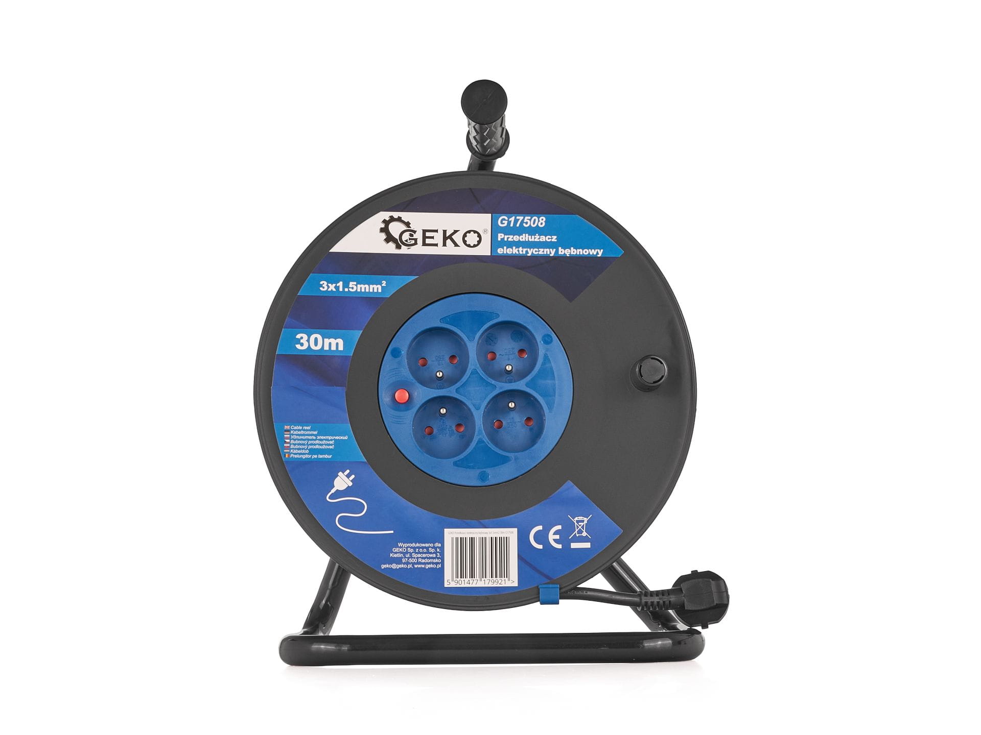 Przedłużacz elektryczny bębnowy 3 x 1.5mm² 30 m zwijany marki Geko