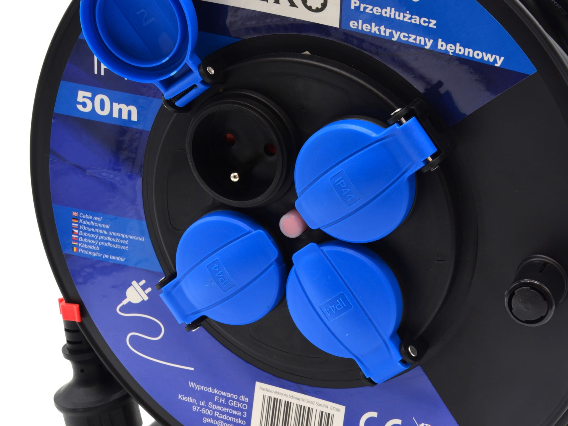 Przedłużacz elektryczny bębnowy 3x1.5mm² 50m zwijany IP44 Geko