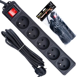 Przedłużacz elektryczny – listwa zasilająca czarna 5 gniazd 5m Keltin