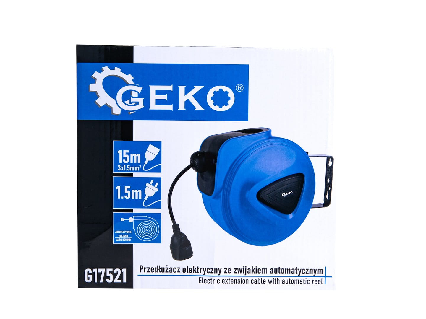 Przedłużacz elektryczny ze zwijakiem automatycznym 15m + 1,5m marki Geko