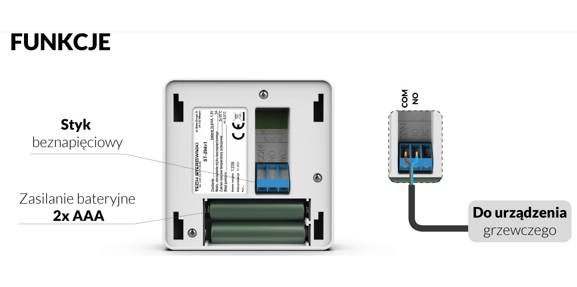 Przewodowy regulator pokojowy dwustanowy BIAŁY ST-249v1 TECH