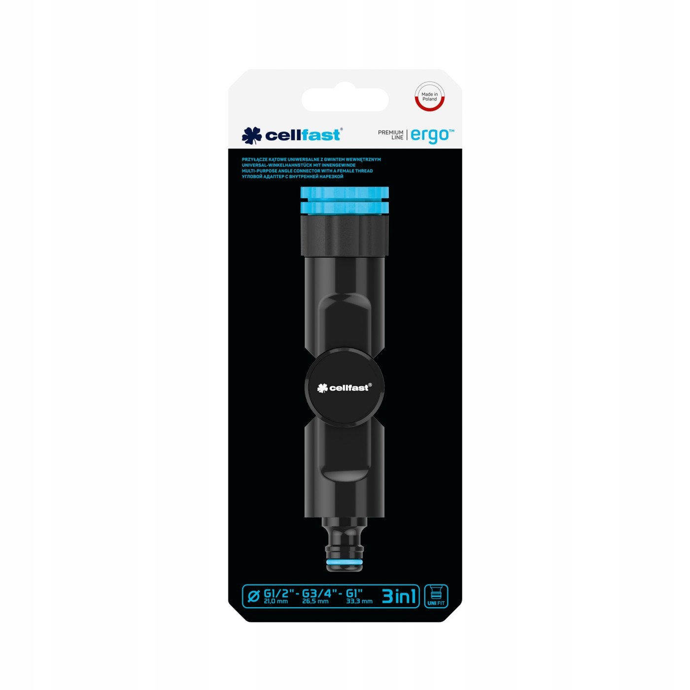 Przyłącze kątowe uniwersalne z gwintem wewnętrznym ERGO™ G1/2" - G3/4" - G1" marki Cellfast
