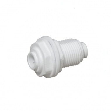 Można tą złączkę w bardzo prosty sposób za pomocą śrubunka przymocować do blatu, ścianki obudowy filtra itp. Szerokość rozstawu pomiędzy nakrętkami to ok 1 cm (tyle może mieć szerokość blat, ścianka obudowy filtra)