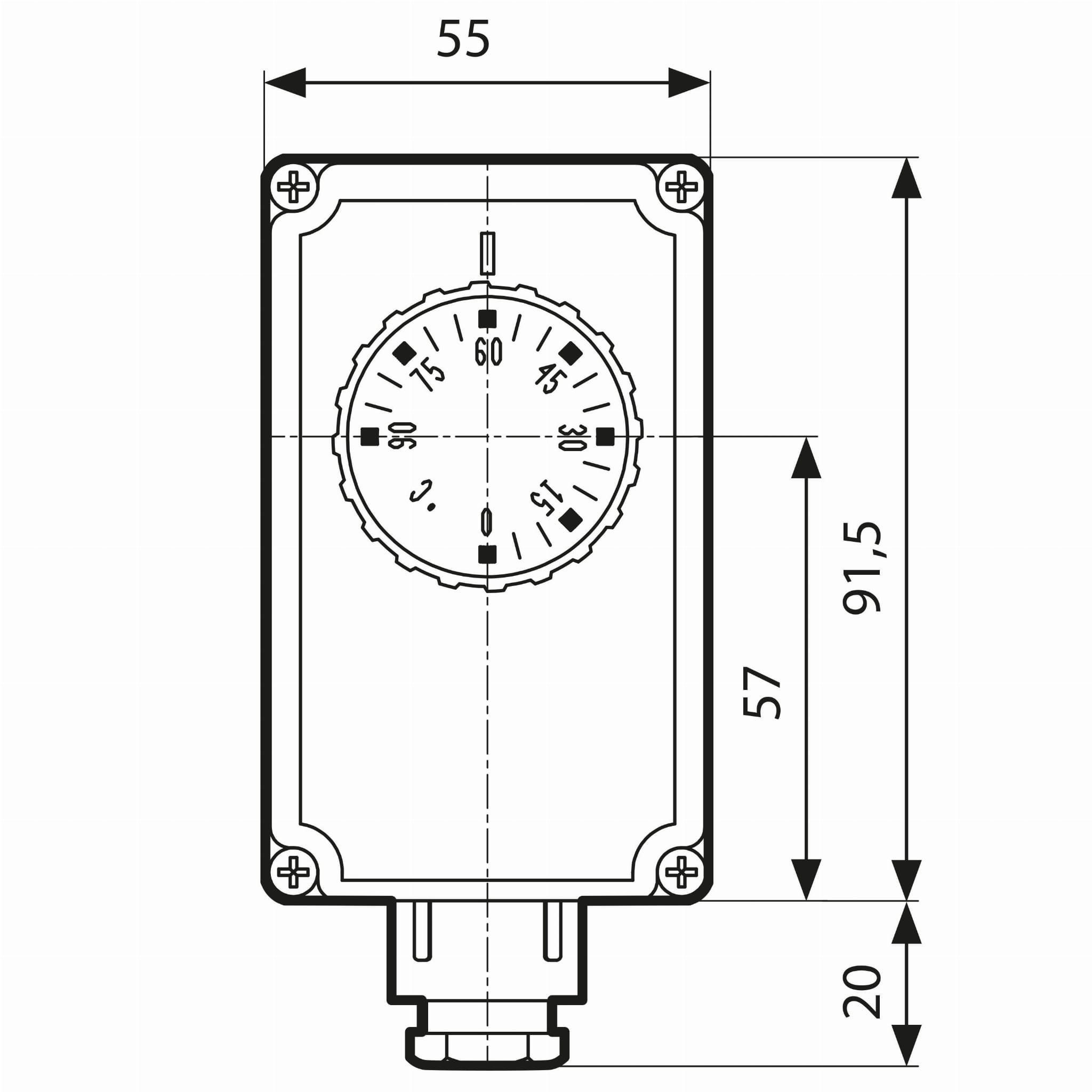 Termostat zanurzeniowy TC2 jest nastawnym termostatem przełączającym z nastawą zewnętrzną. Nastawa odbywa się poprzez pokrętło w górnej części obudowy. Pomiar temperatury odbywa się poprzez tuleję.