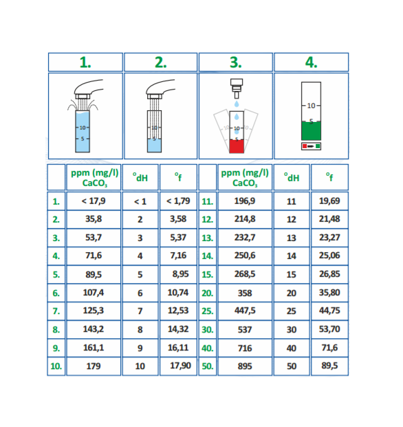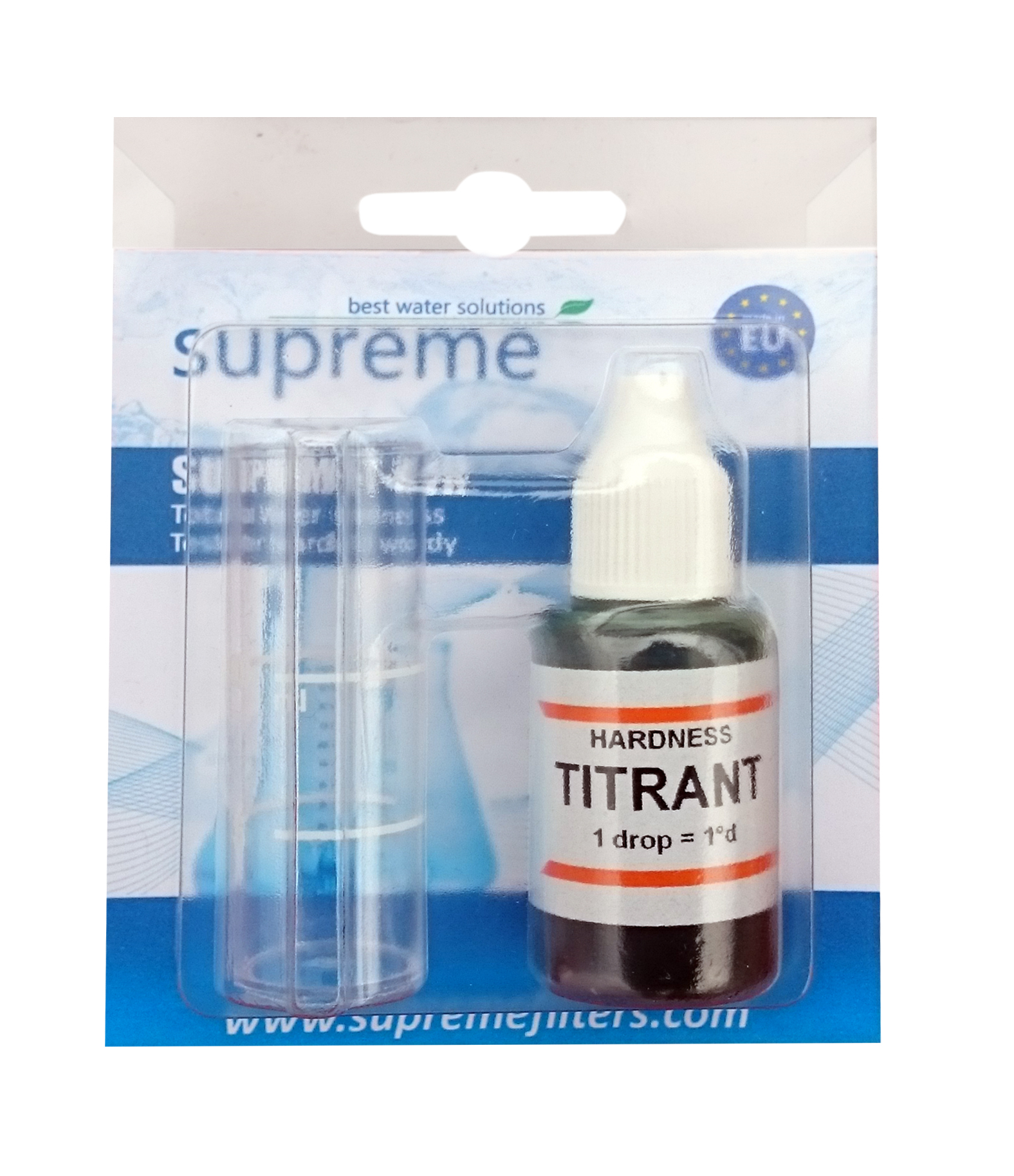 Tester do wody marki SUPREME pozwala w łatwy sposób ocenić stopień twardości wody. Można użyć produktu wielokrotnie (w zależności od twardości wody może to być od 10 do 30). Tester określa twardość wody w stopniach niemieckich (dH). Dołączona tabela pozwala przeliczyć twardość na inne jednostki.