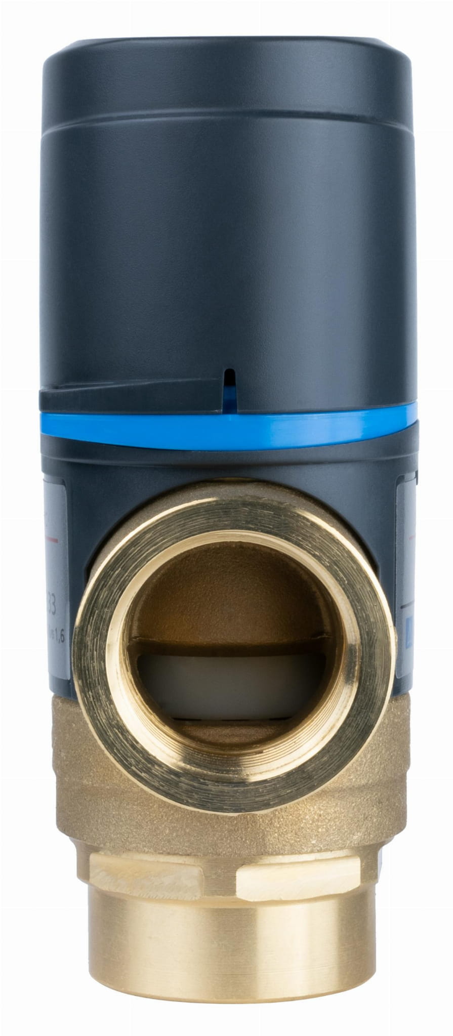 Funkcja „bez oparzeń” blokuje wypływ wody ciepłej przy braku dopływu do zaworu wody zimnej. Pod pokrywką chroniącą przed przypadkową zmianą nastawy umieszczono pokrętło do ustawienia temperatury wody zmieszanej. Nie wymaga czynności konserwacyjnych i może być montowany w dowolnej pozycji.