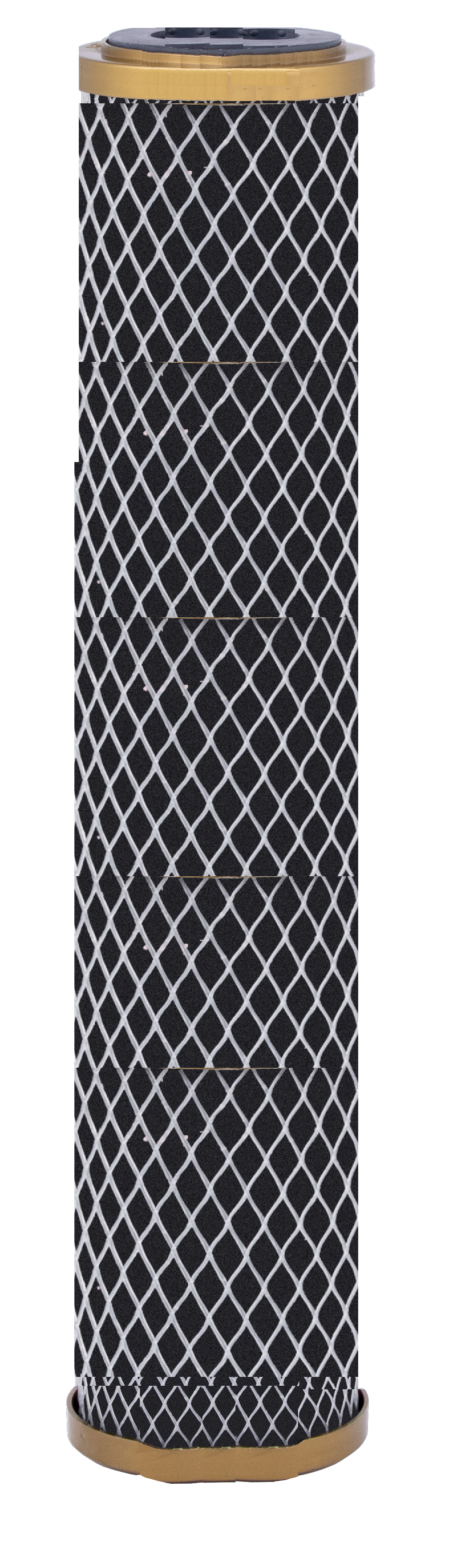 FCCBL20BB-G z prasowanego węgla z łupin orzechów kokosowych firmy AQUAFILTER do wody redukuje chlor i jego toksyczne substancje, metale ciężkie, detergenty, pestycydy oraz organiczne związki chemiczne.