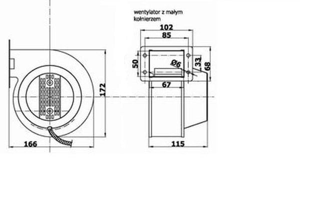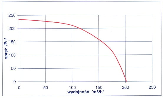 Obudowa wentylatora wykonana jest z blachy stalowej pokrytej lakierem proszkowym. Silnik umieszczony jest na zewnątrz obudowy, przykręcony wkrętami M4, zabezpieczony jest osłoną wykonaną z tworzywa. Osłona stanowi zabezpieczenie przed dotknięciem części pod napięciem. Metalowy wirnik wentylatora mocowany jest bezpośrednio na wałku silnika. Kołnierz ssący wentylatora zabezpieczony jest osłoną uniemożliwiającą dotknięcie palcem części ruchomych /turbiny/.