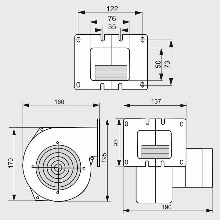 Wentylator WPA 01 KP klapka+przysłona dmuchawa do kotła pieca MplusM