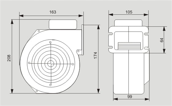 Dzięki zwartej obudowie wentylator może być montowany bezpośrednio na przewodzie wylotowym lub do urządzenia technologicznego przy pomocy kołnierza przyłączeniowego śrubami M 5 lub M6.