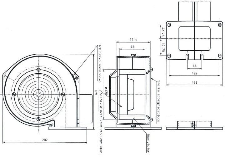 Wentylator przeznaczony jest do nadmuchu powietrza do palenisk kotłów CO. Może być również stosowany do wentylacji ogólnej pomieszczeń i urządzeń technologicznych. Wentylator WPA 117 KP z wtykiem może pracować w temperaturze otoczenia -25 ºC do + 40 ºC