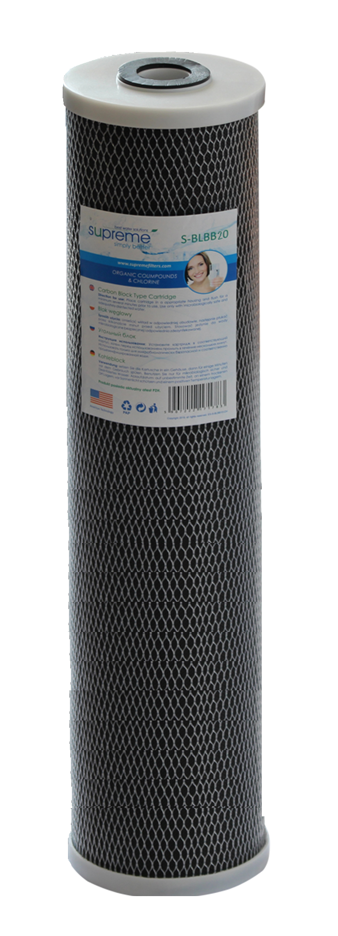 Blok węglowy do wody S-BLBB20 do wody redukuje: chlor i jego toksyczne substancje, metale ciężkie, detergenty, organiczne związki chemiczne, pestycydy. Wkład węglowy S-BLBB20 wykonany jest ze spiekanego węgla aktywowanego, który usuwa z wody od 98% do 99% wolnego chloru, rozpuszczalników chloropochodnych, węglowodorów aromatycznych (poprawia smak i zapach wody), a także do 85% pestycydów pochodzenia chloropochodnego, związków wieloaromatycznych, fenolu, benzenu oraz substancji organicznych.