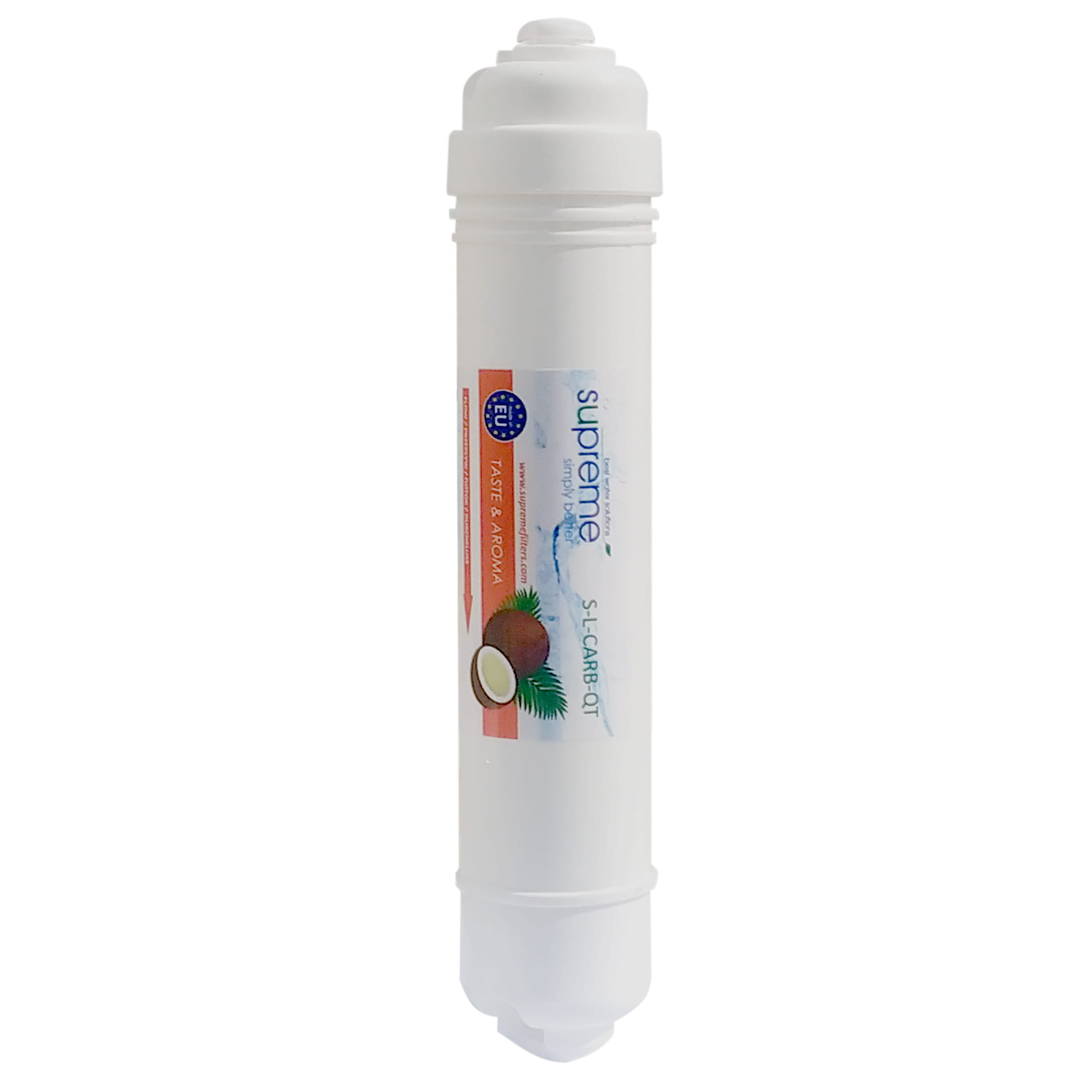 Wkład węglowy S-L-CARB-QT SUPREME 2” liniowy wkład wypełniony węglem aktywnym. Stosowany jest po procesie filtracji osmotycznej. Nadaje wodzie doskonały smak i zapach wody. Przeznaczony jest do uzdatniania zimnej wody pitnej. Wkład wyposażony jest w filtr końcowy zapobiegający wydostawaniu się cząsteczek złoża na zewnątrz wkładu. Wkład jest kompatybilny z większością systemów RO dostępnych na rynku. Posiada aktualny atest PZH, który dopuszcza produkt do kontaktu z wodą pitną.