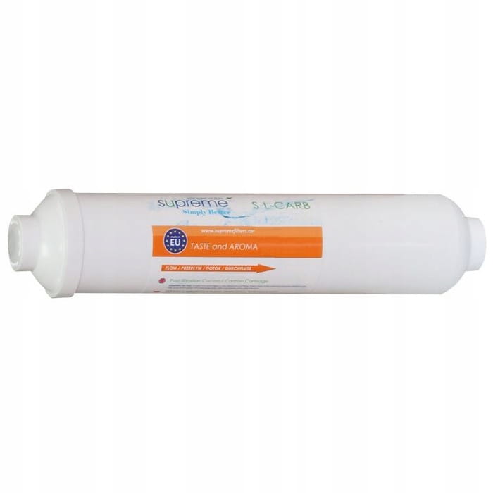 Wkład węglowy S-L-CARB SUPREME 2” wypełniony jest węglem z łupin kokosowych. Stosowany jest po procesie filtracji osmotycznej. Nadaje wodzie doskonały smak i zapach wody. Przeznaczony jest do uzdatniania zimnej wody pitnej. Wkład wyposażony jest w filtr końcowy zapobiegający wydostawaniu się cząsteczek złoża na zewnątrz wkładu. Wkład jest kompatybilny z większością systemów RO dostępnych na rynku. Posiada aktualny atest PZH, który dopuszcza produkt do kontaktu z wodą pitną.