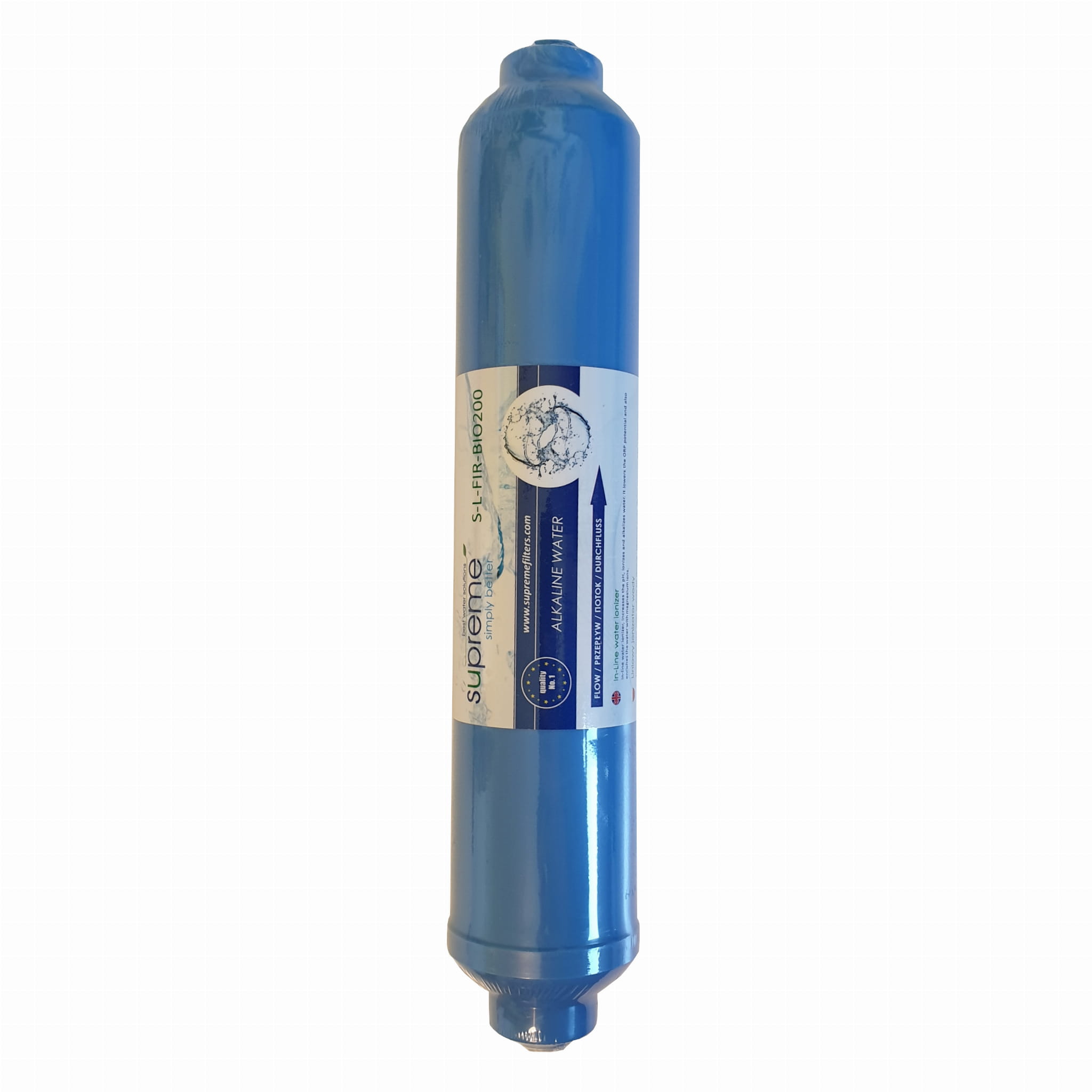 S-L-FIR-BIO200 to nowoczesny wkład liniowy, który skutecznie podnosi pH, jonizuje oraz alkalizuje wodę, oraz zmiata wolne rodniki. Obniża potencjał ORP, a także wzbogacaja wodę w związki magnezu. Oferowany wkład jest z przyłączem typu szybkozłącza QC, dzięki temu instalacja/wymiana jest bardzo szybka i łatwa. Połączenie QC eliminuje konieczność użycia „taśmy teflonowej” lub innych uszczelniaczy. Wkład S-L-FIR200 jest kompatybilny z większością systemów dostępnych na rynku. Posiada aktualny atest PZH, który dopuszcza produkt do