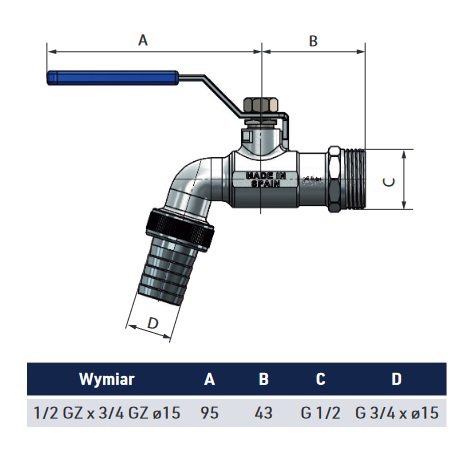 - Rozmiar gwintu 1/2"