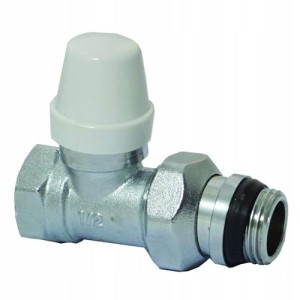 Zawór grzejnikowy do montażu na powrocie grzejnika pokojowego. Za pomocą zaworu można odciąć przepływ wody w grzejniku, ponadto dzięki śrubunkowi w zaworze ułatwia demontaż grzejnika w przypadku remontu, wymiany.