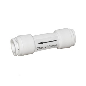 Złączka z zaworem ma zastosowanie do filtrów z odwróconą osmozą, systemów RO. Stosowany na wyjściu wody uzdatnionej z membrany osmotycznej. Zabezpiecza membranę przed cofnięciem się wody od strony wylewki, oraz blokuje wydostawanie się wody ze zbiornika do kanalizacji. W momencie uszkodzenia zaworu zwrotnego, może to być przyczyną ciągłego pobierania wody przez filtr odwróconej osmozy. Złączka ma również inne zastosowania w filtrach do wody .