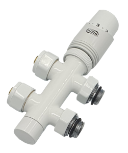 Zawór termostatyczny zespolony prosty biały PEX/AL/PEX fi 16*2 marki Goshe