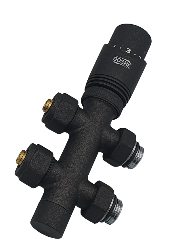 Zawór termostatyczny zespolony prosty czarny PEX/AL/PEX fi 16*2 marki Goshe