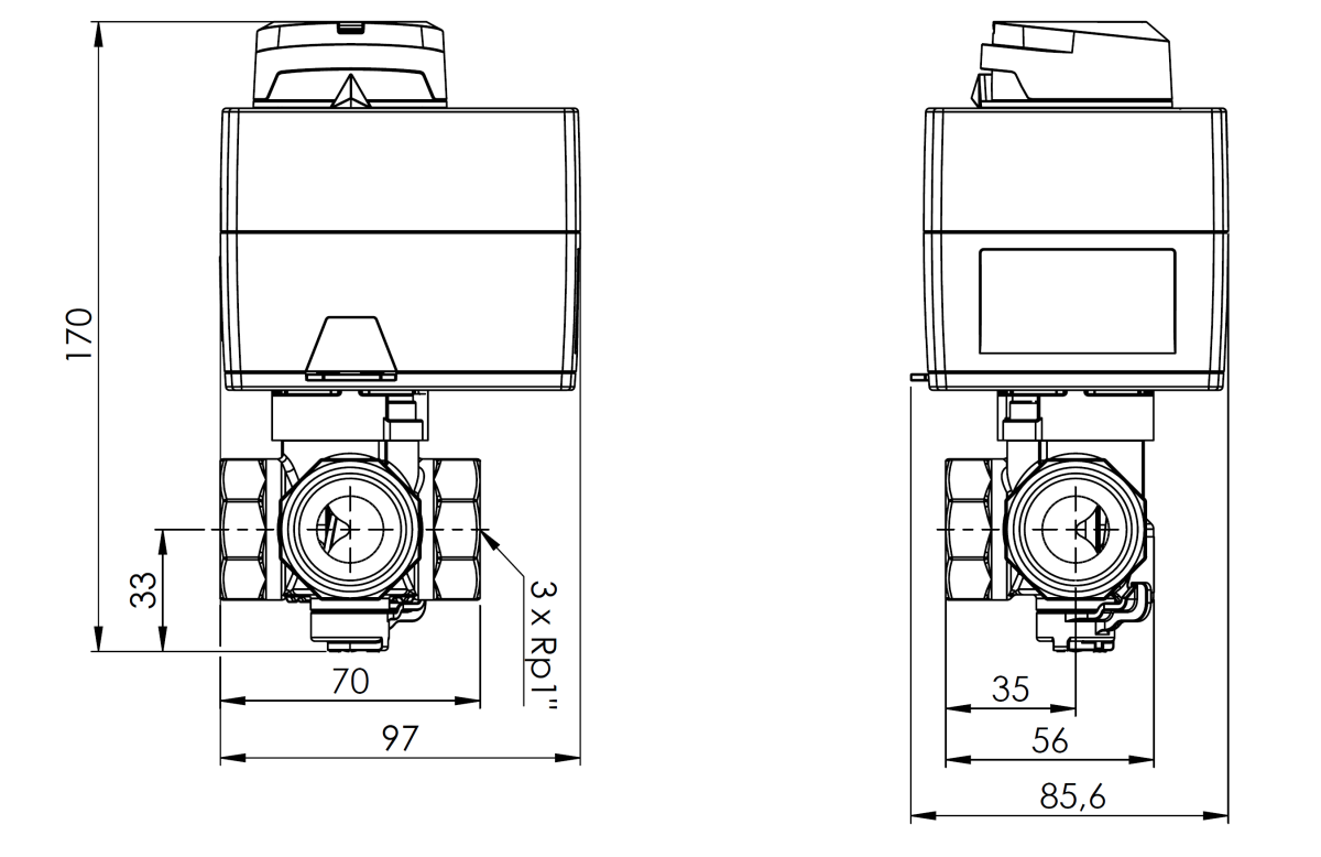 Zestaw zawór 3-drogowy ARV 384 1" + siłownik ARM 343 Afriso