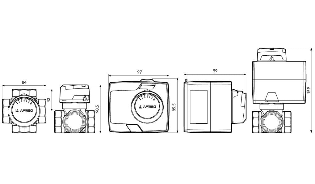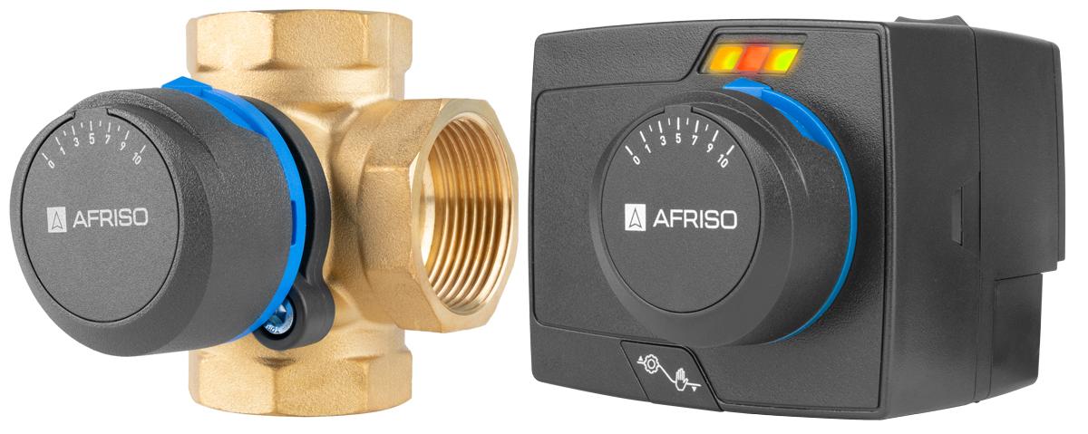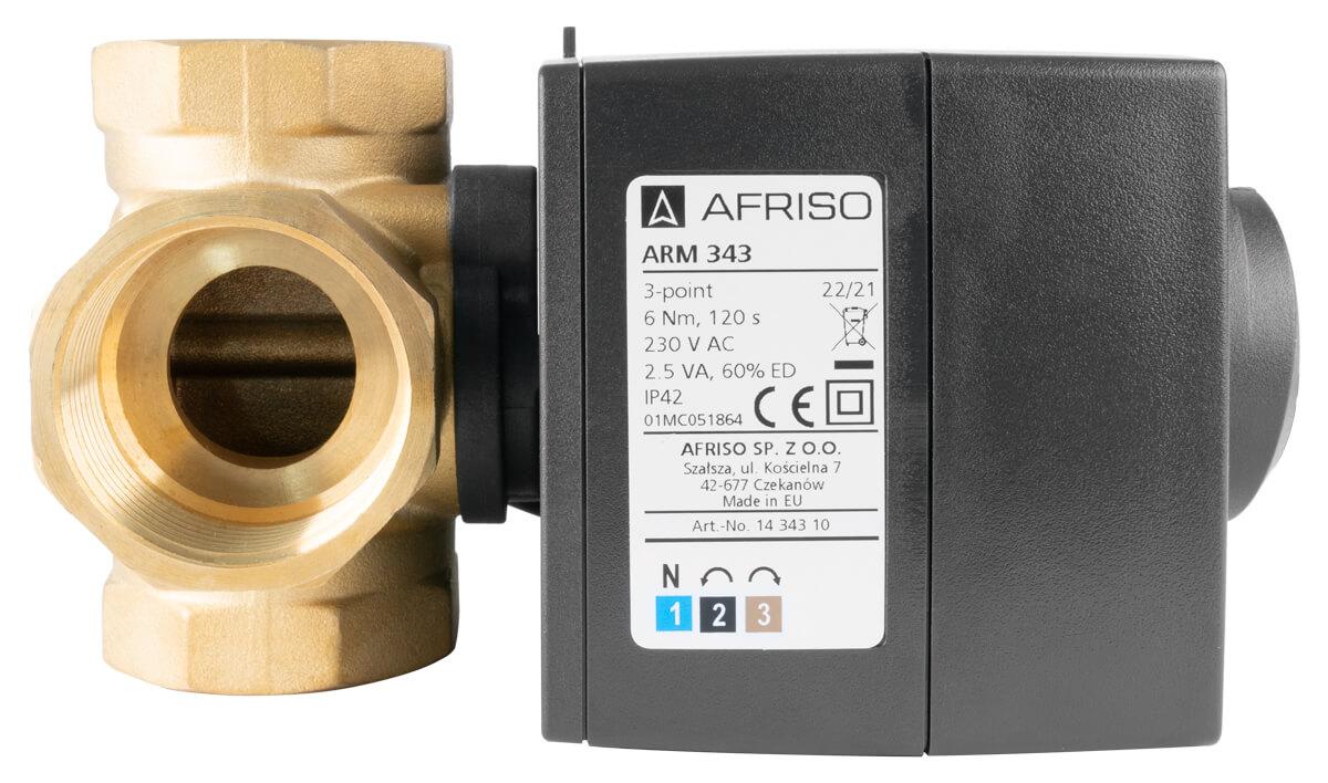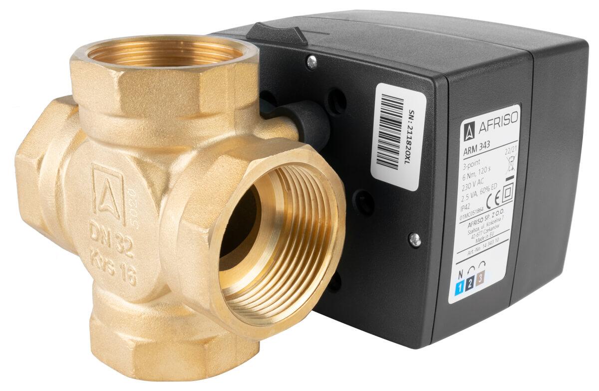 Zestaw regulacyjny ProClick: 4-drogowy obrotowy zawór mieszający ARV 485 ProClick, DN32, Rp1 1/4", Kvs 18 + siłownik elektryczny ARM 343 ProClick marki Afriso