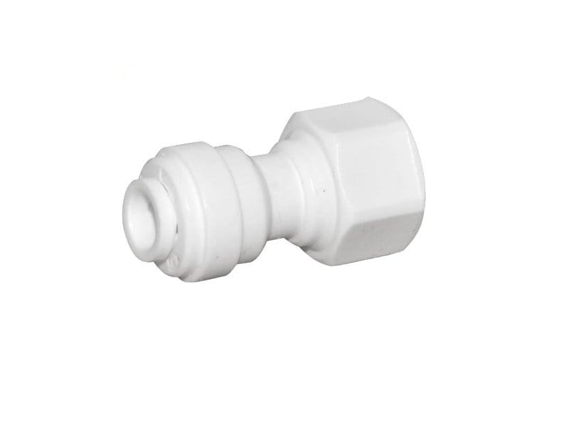 Złączka firmy Aquafilter z przyłączem na 7/16 GW i 3/8 pod wężyk.